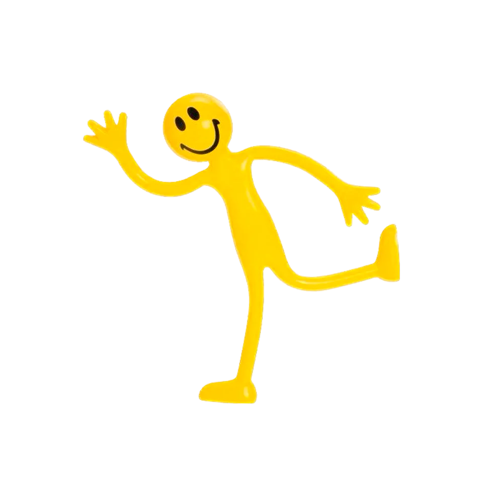 A popular bendy toy, the Neato! Smiley Bendy Man is made of flexible material and provides hours of awesome fun and wonder-filled imaginative play anywhere, anytime. This bendable man is bright yellow and made with nontoxic, kid-safe flexible material. Each figure stands 5 inches tall, has bendy limbs, and a large round head with a smiling face.