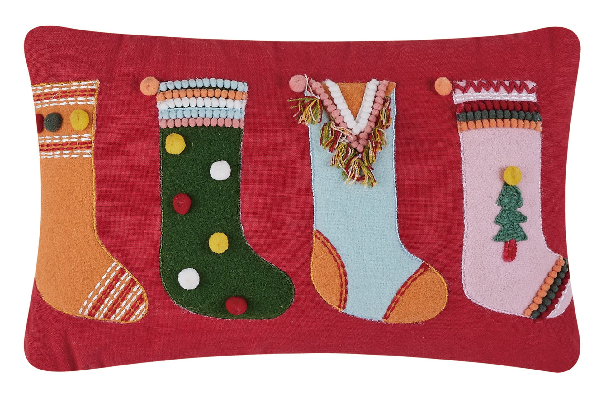 Boho Stockings Embroidered Pillow Poly filled