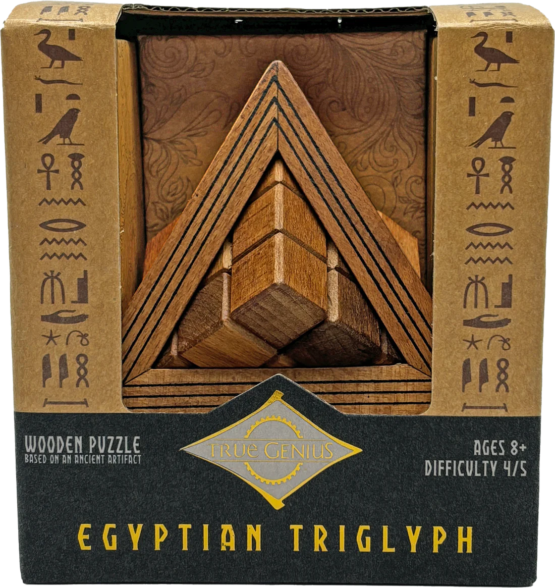 Dive into the mysteries of ancient geometry with the Egyptian Triglyph, a captivating puzzle inspired by the ingenuity of pyramid builders. Your first challenge is to extract the concealed cube hidden within the puzzle. But the journey doesn’t end there—reassemble the cube within the framework of the mystic pyramid to complete the ultimate brainteaser.