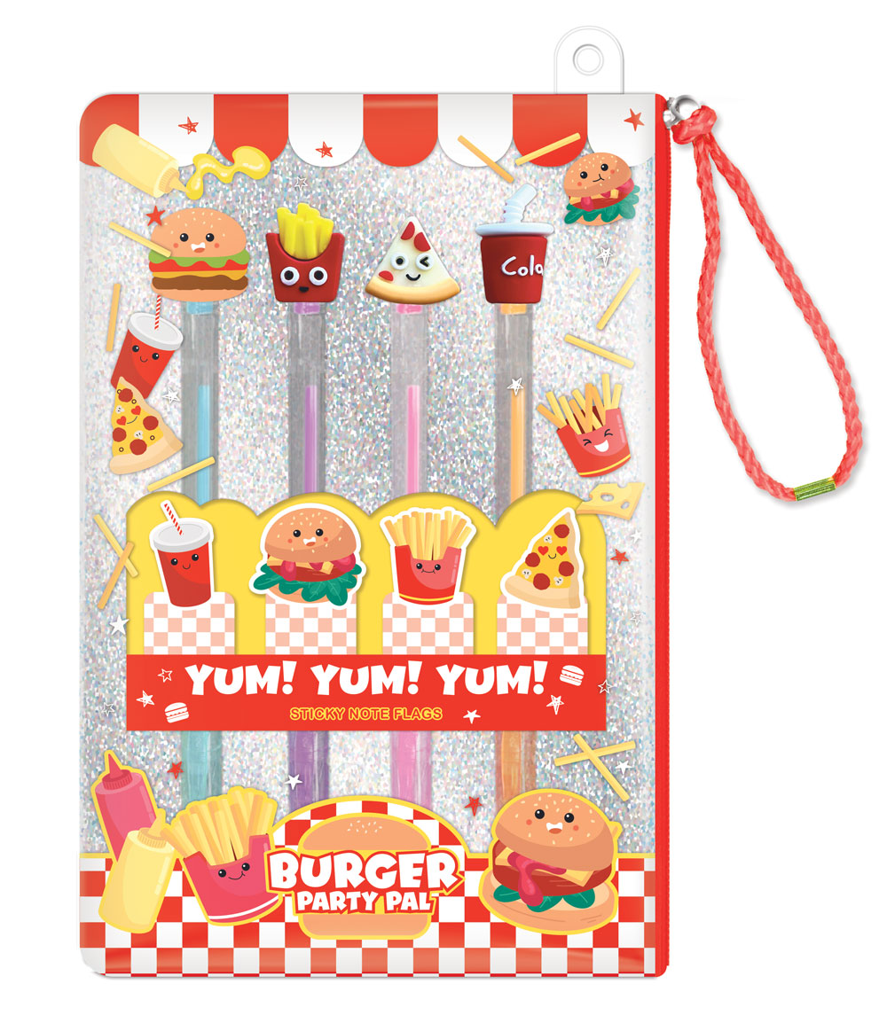 - Featuring smiley face burger, fry, taco, and pizza pen toppers and graphics