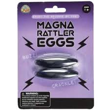 See the law of magnetic attraction in action when these eggs collide, connect and rattle. Made of Metal. 2.5" L.