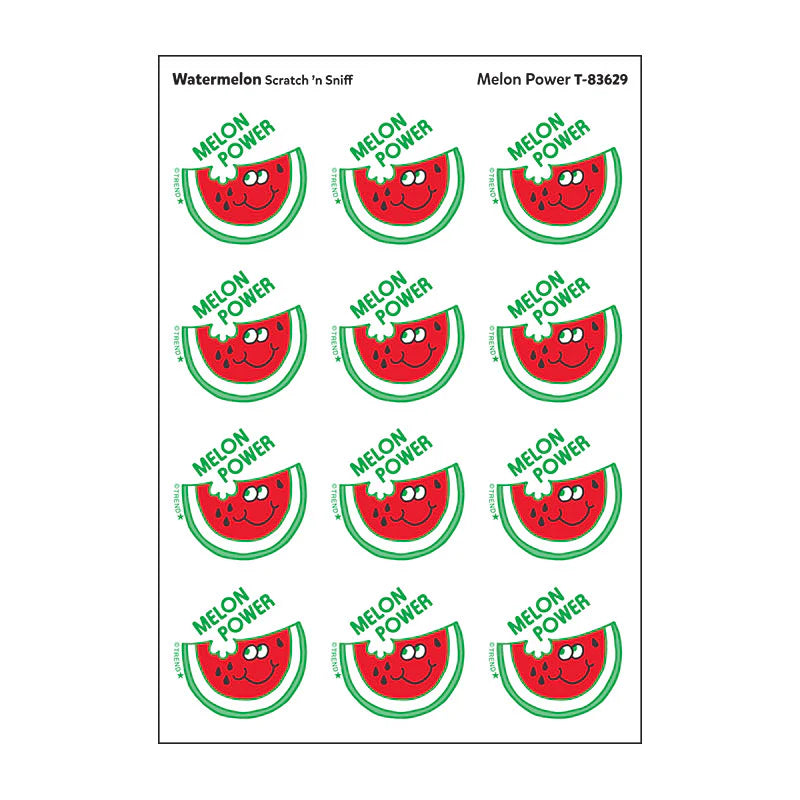 Get a whiff of this Melon Power, watermelon-scented sticker! TREND Scratch 'n Sniff Stinky Stickers® from the '80s are BACK! And they're SCENT-sational! Fun to collect, trade, and celebrate accomplishments and special occasions. Collectors will be happy to spot the ★ to distinguish TREND Retro Stinky Stickers® from those printed in the 1980s.