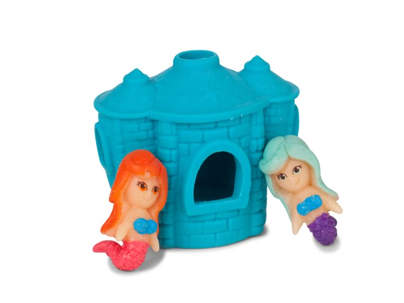 Keep fidgeting hands busy with this stretchy mermaid and castle toy. Pull the mermaids through the castle for hours of fidgeting fun.