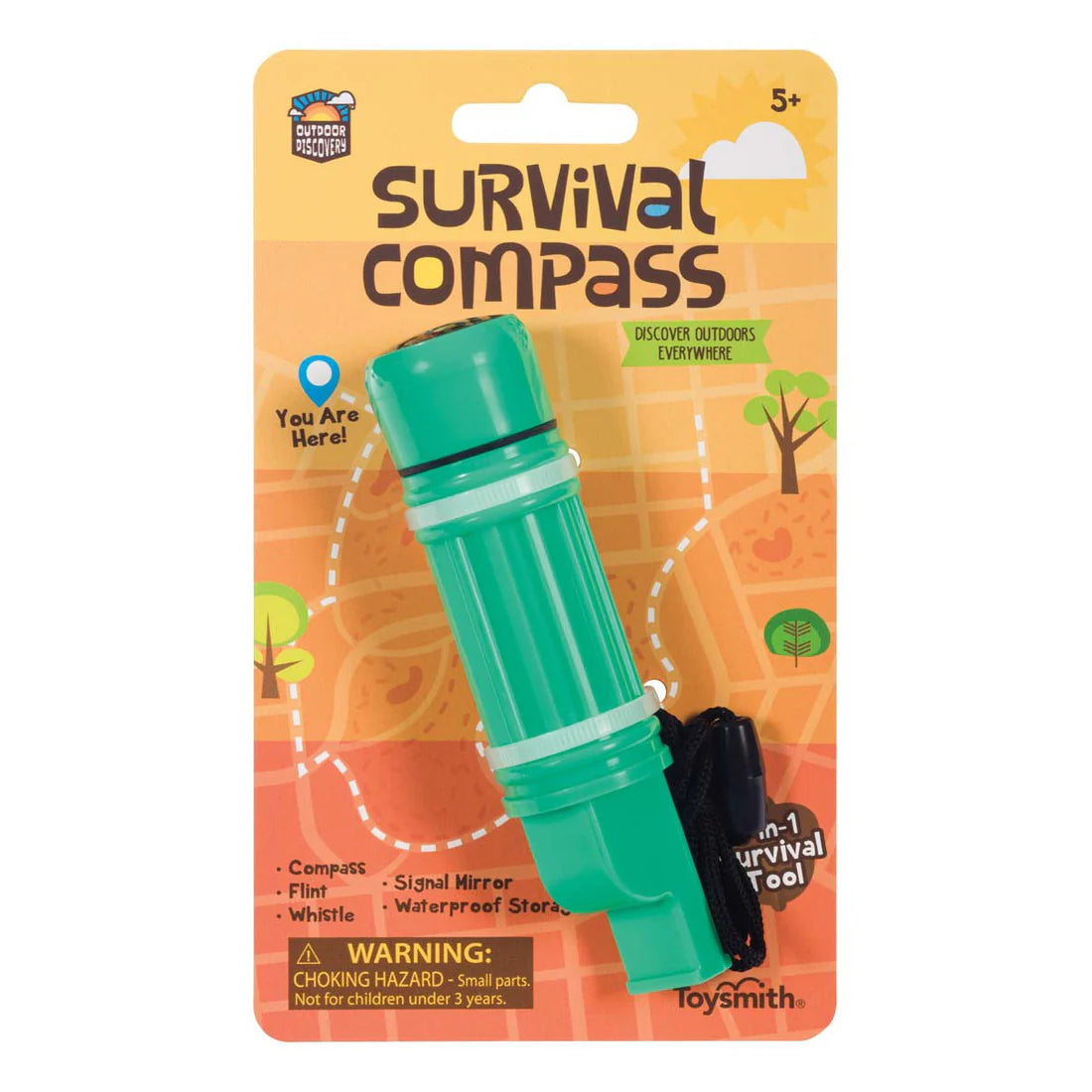 The Outdoor Discovery Survival Compass is a 5-in-1 kid-sized survival tool. This multifunctional tool has a screw top and comes in a variety of bright colors. Includes a compass and whistle, as well as a signal mirror and flint strip inside, and waterproof storage and lanyard outside. It’s lightweight and easy to hold. At only 4.5 inches long, this combination survival tool has everything kids need to feel safe and secure when exploring the outdoors.
